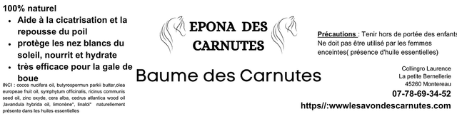 Le Baume des Carnutes est un soin artisanal polyvalent reconnu pour son efficacité sur les petites irritations, les peaux sèches, les zones sensibles et les bobos du quotidien. Idéal pour les chevaux comme pour un usage traditionnel, il hydrate, nourrit et protège durablement grâce à sa composition naturelle.